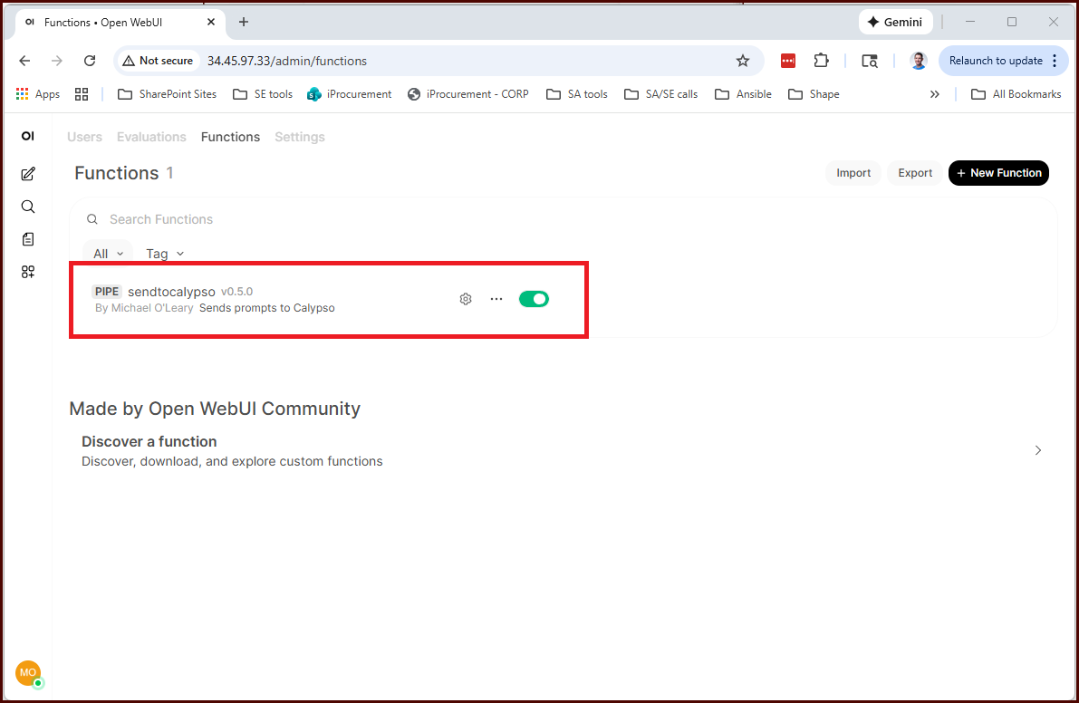 Now we will explore more extensibility with Open WebUI functions. In this article we will show how to add a 3rd party prompt scanner (F5 AI Guardrails). We could use Functions for other things, like